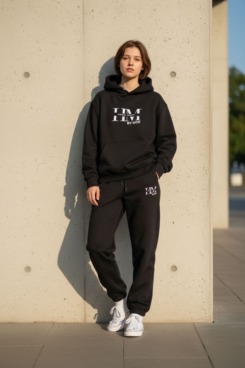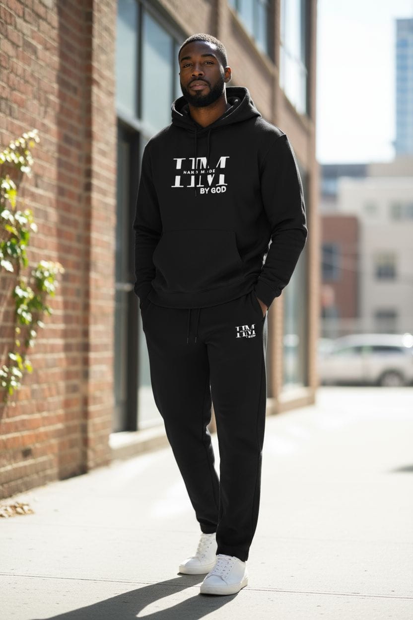 Black unisex drop shoulder hoodie